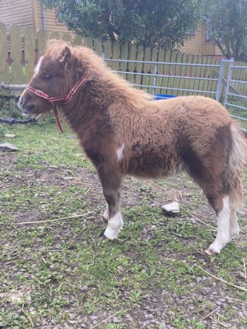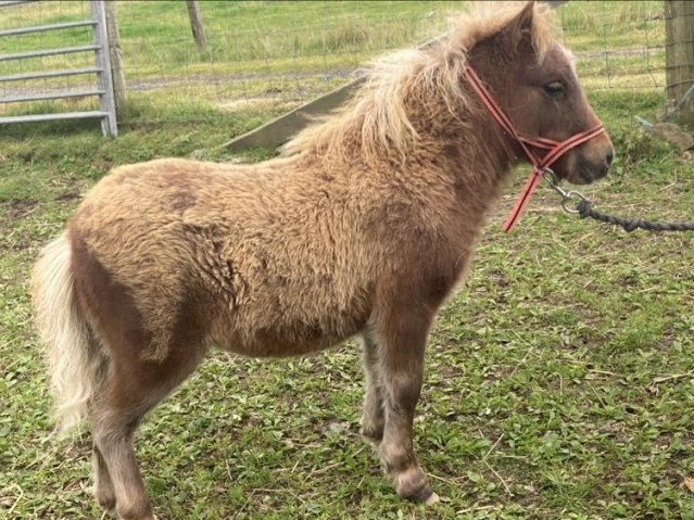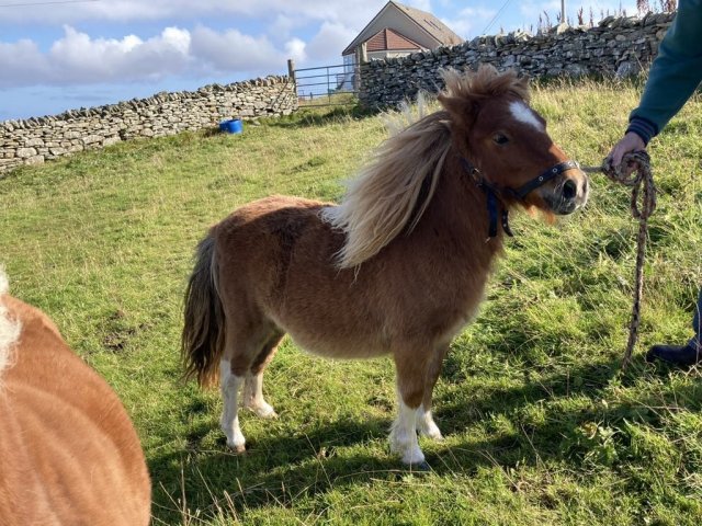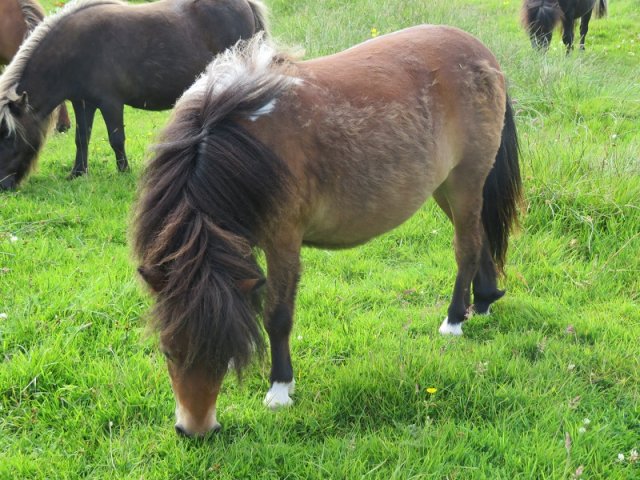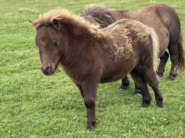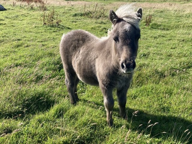 Zola is an extremely pretty, upright mushroom filly. She was a complete surprise as we hadn't realised Skerry was carrying the mushroom gene. Tested as Mu/Mu. Zola is maturing nicely and was second place miniature filly at the 2024 Youngstock Show. She is clear of Skeletal Atavism through parental testing.