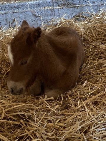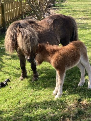 A first foal for Gue Rebecca who really is Xtra Special. A very pretty girl with a lovely head. She has been lightly shown winning a second and 2 third places. At the 2024 Youngstock Show she was third placed miniature filly. Xtra Special is clear of Skeletal Atavism through parental testing.