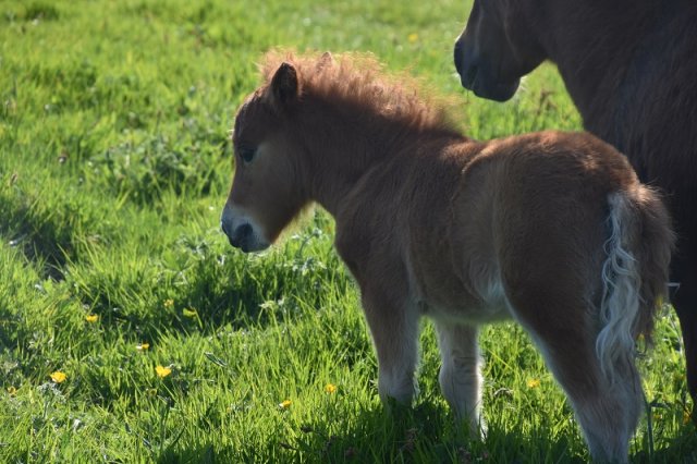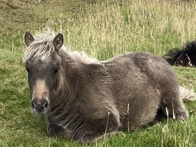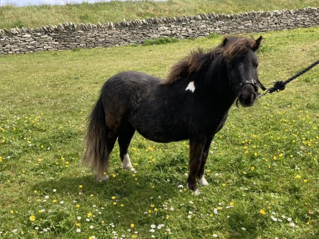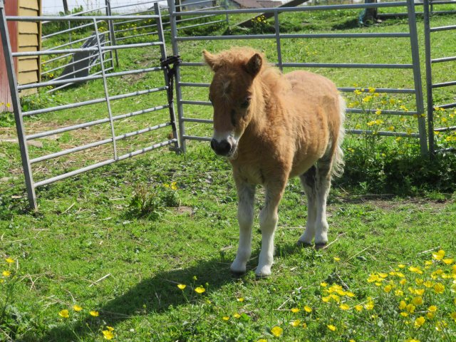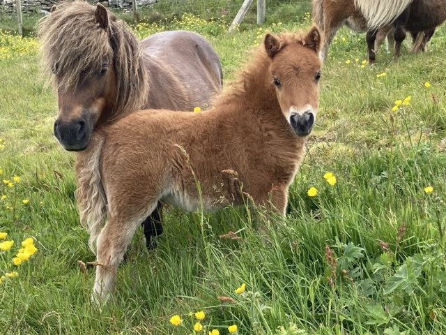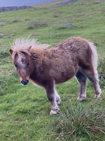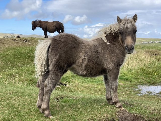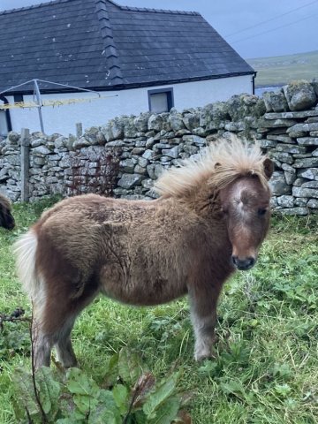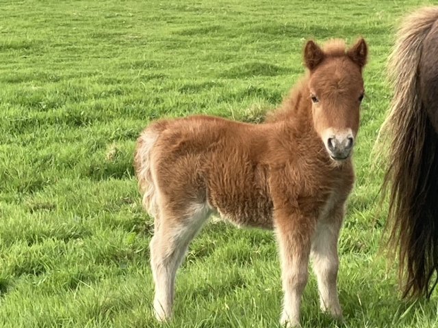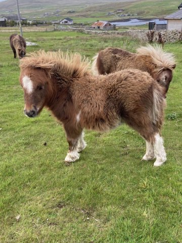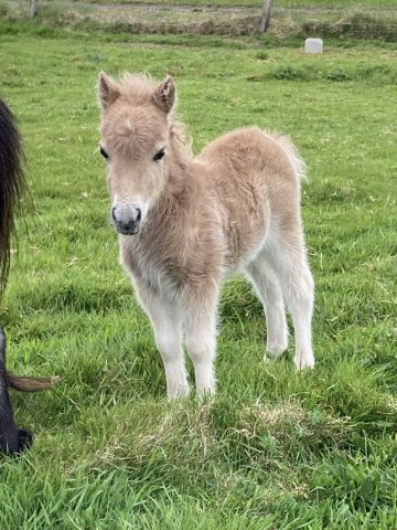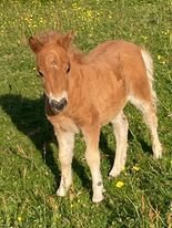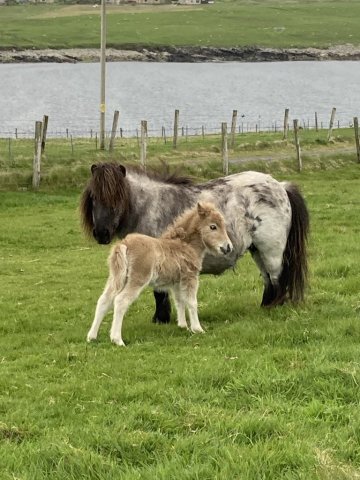This little girl was late arriving and didn't have the easiest start in life but has come on in leaps and bounds. She is Gue Uproar's first foal. She is a lovely filly and very friendly. Tested and carrying the mushroom gene and also clear of Skeletal Atavism through parental testing.