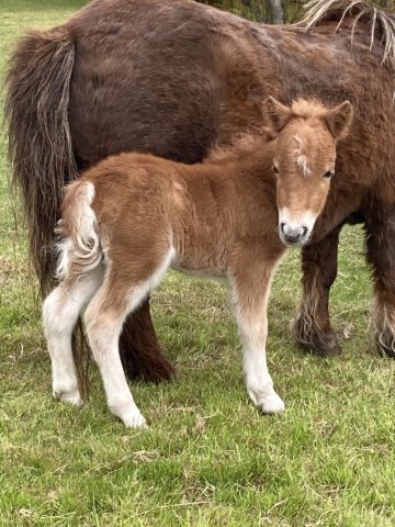 An extremely friendly well marked filly from Opal - a proper mini-me! Upright and correct. Xia was first placed miniature 1year old filly at the 2023 Youngstock Show in a class of 8. At the 2024 Youngstock Show she won her class and was then Reserve best 2 year old. Xia is tested clear of Skeletal Atavism.