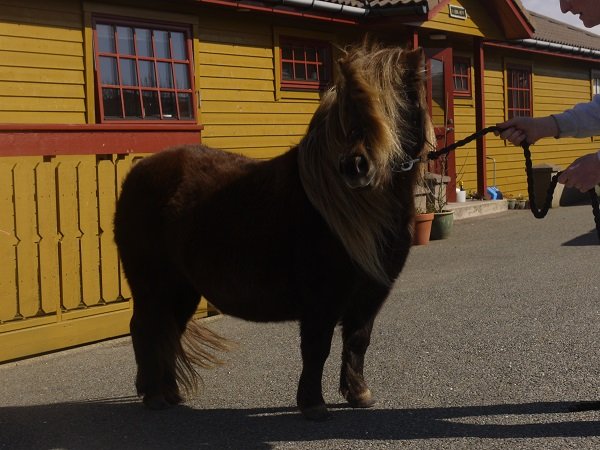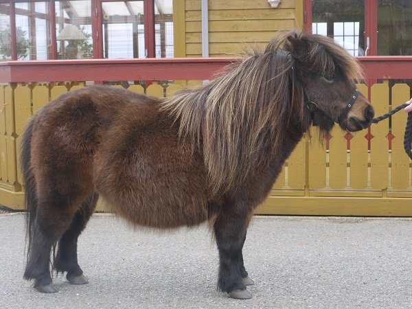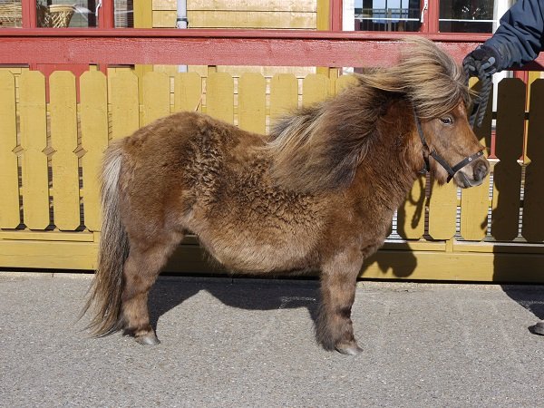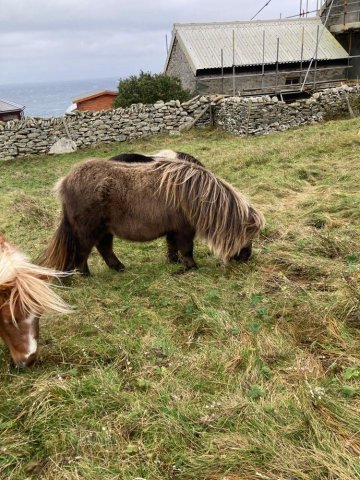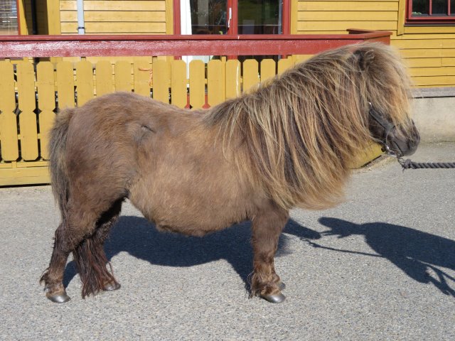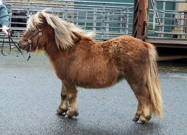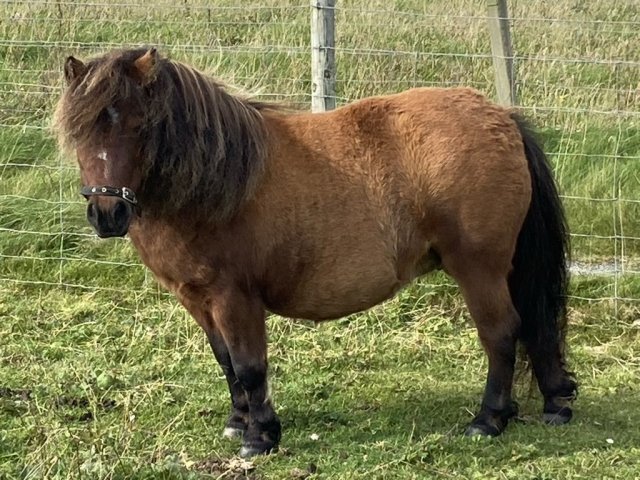 Paloma is a fabulous liver chestnut mare who definitely has the look of her Sire. She has a lovely nature and we are very pleased with her and although you shouldn't have favourites she is up there! Paloma was shown in 2018 where she was placed third at the Cunningsburgh show with her lovely filly foal Gue Tarah. Tarah has done very well for the Abbeygreen Stud in Scotland. Paloma also did very well with Reece Macleod in the Young Handler Class at the 2019 Breed Show - Reece won his age group and went on to win Overall Young Handler. Reece had never handled Paloma until the day of the show so all credit to him. Paloma's 2 year old filly, Gue Xena, who is with the Lochfleet stud, was best miniature and overall reserve champion at the Tayside Foal Show in December 2024. Paloma has been tested as a mushroom carrier - Mu/N. We are very pleased with her 2020 colt foal - Gue Viking - who we have retained as a stallion. She has been tested and is clear of Skeletal Atavism.