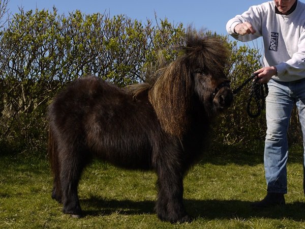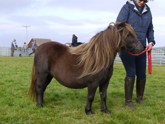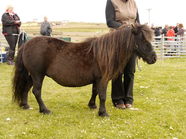Bella was the first filly foal I produced. We really liked her so decided to keep and breed from her and as a result she is the matriarch of the stud. Bella has excellent movement. She was the third placed miniature mare at the SPSBS Breed Show in 2009. Bella was first placed Miniature Mare with Foal at Foot at the 2011 Viking Show in a strong class. She went through the 2013 Shetland Pony Evaluation Scheme and gained a silver award. Bella's sire, Mack of Knowe, was Shetland Centenary Show Miniature Champion. Bella has produced some good foals for us and is now retired here at the stud.