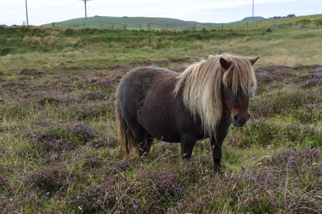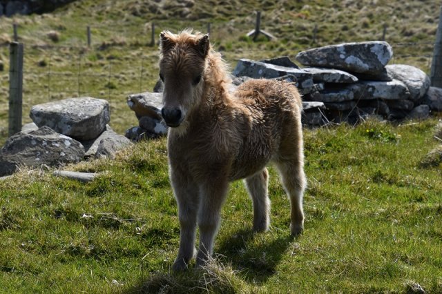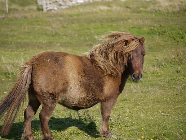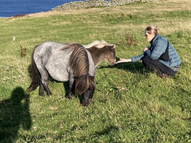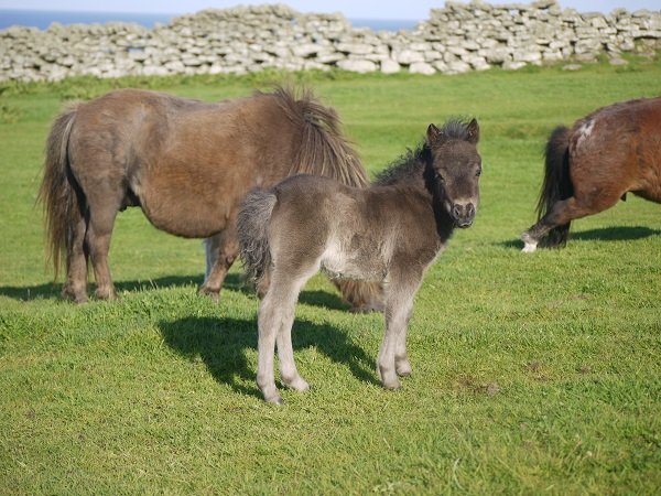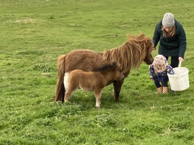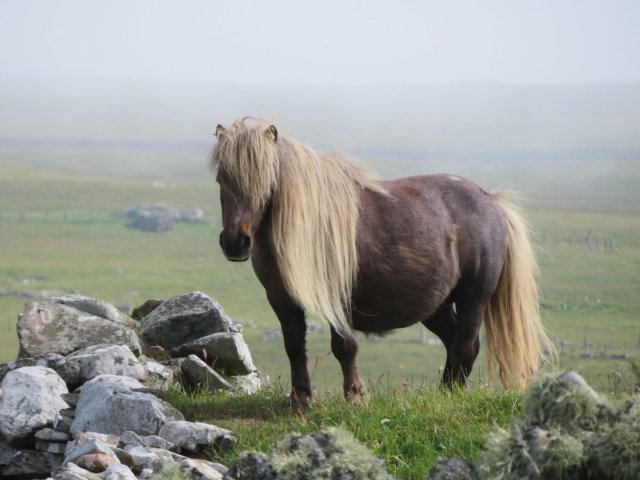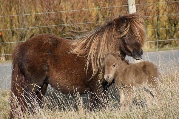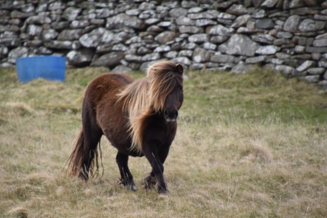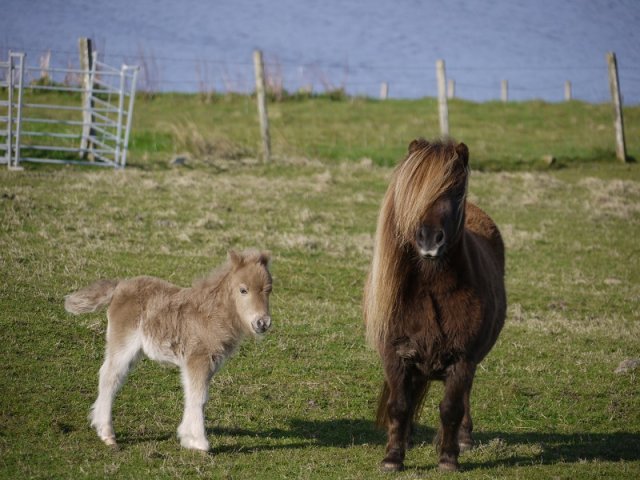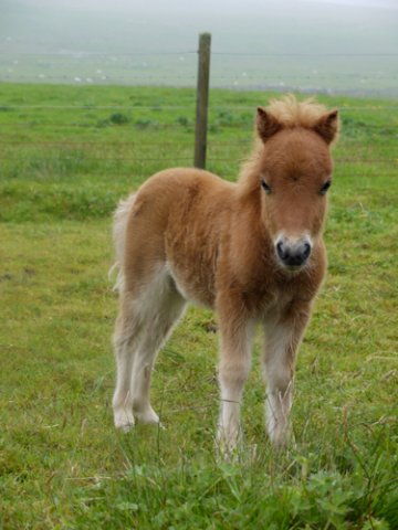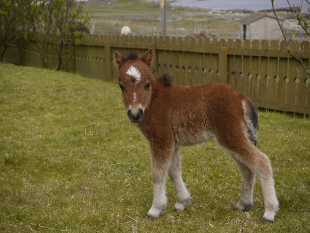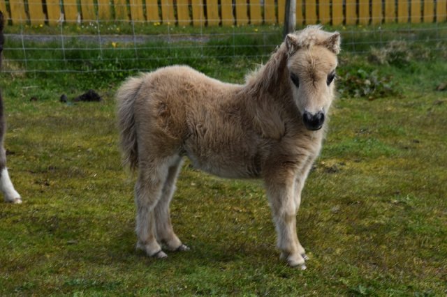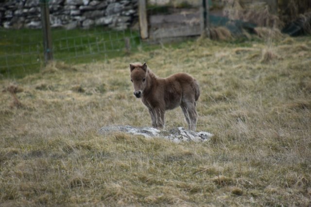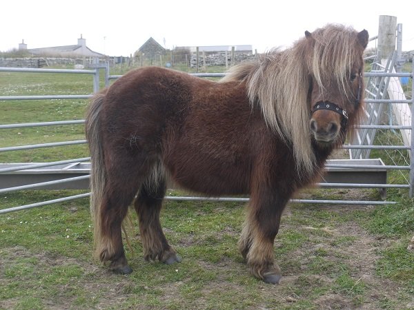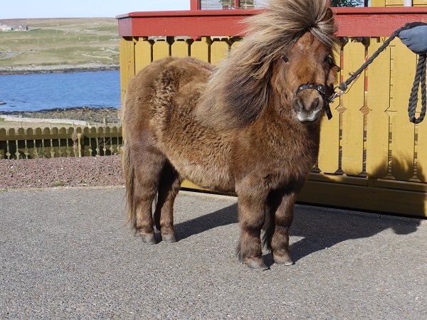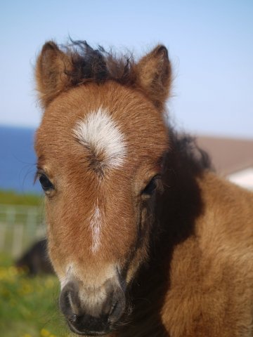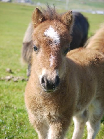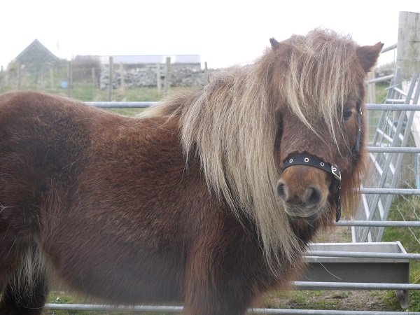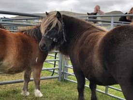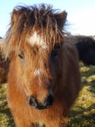 Gue Lily is the only filly that Gue Delight produced so is special to us. Lily has very unusual colouring, in fact, when we asked visitors to the stud over the Breed show period in 2019 no one was sure what colour she was (we think she is chestnut with a lot of white hairs through her coat). Lily had her first foal Gue Unst in 2019 - a lovely colt. Unst has done well in his first show on the Mainland - he gained a second place for best miniature colt born in 2019/20 at the National Stallion show. Lily's second foal is a lovely bay filly from Tot of Berry who is now in Orkney. Lily is the only one of our ponies who, when tested, came back N/Del 1 which means she does carry the SA gene. She has had 3 foals, Unst has tested clear, Xaviera has not yet been tested and Gue Zoe, last year's foal, was a carrier, however, she was a lovely filly and has been sold to a showing home. We are keeping Lily and hope to get a filly from her to continue the line. She will run with a stallion who is SA clear again this year.