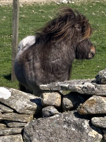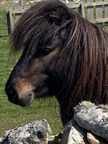 Gue Viking is a lovely bay roan stallion. He is a full brother to Gue Tarah who has done very well in shows on the Mainland with the Abbeygreen Stud. His Dam is Gue Paloma (ex Brandon Fiery Jack) and Sire is Buxted Explorer. Viking was extremely friendly from the moment he was born. Tested and carrying the mushroom gene MU/N also tested for Skeletal Atavism and has come back clear. He has been running with mares in 2024 so looking forward to seeing what he produces.