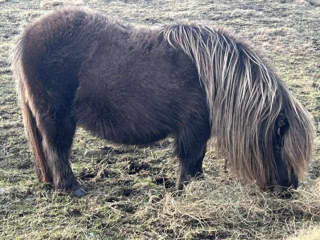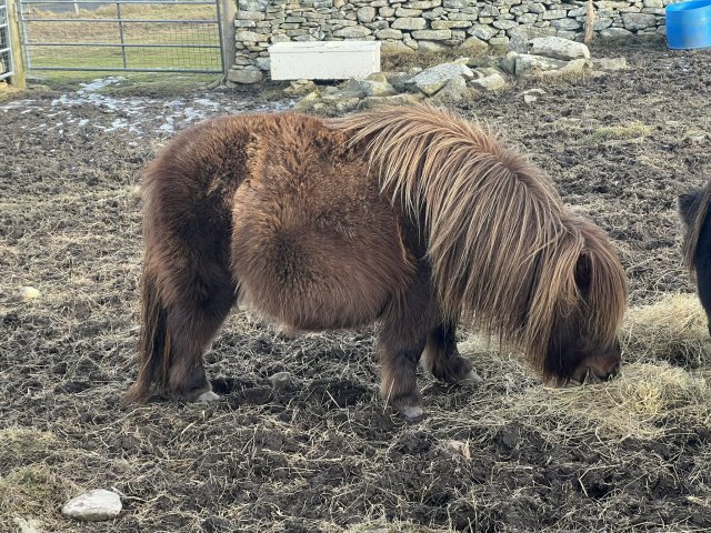 Gue Rebecca is a lovely mare with an excellent temperament. We are very glad to have her as we have sold her sire Lignite Chickadee (Chico). Chico gained a silver award at the Shetland Pony Evaluation Scheme. Rebecca was third placed miniature filly foal at the 2016 Cunningsburgh Show and second placed miniature filly foal at the 2016 Viking Show. Rebecca continues to mature well and as a result she had a first place at the Cunningsburgh show and ended up with Miniature Junior Champion there. She was third placed at the Viking show and third at the Youngstock Show in a mixed class and was top miniature in the 2/3 year old filly class at that show. Rebecca has had a very pretty tri-colour filly foal in 2022, Xtra Special who we have retained. Rebecca has been scanned in foal for 2025. She has been tested and is clear of Skeletal Atavism.
